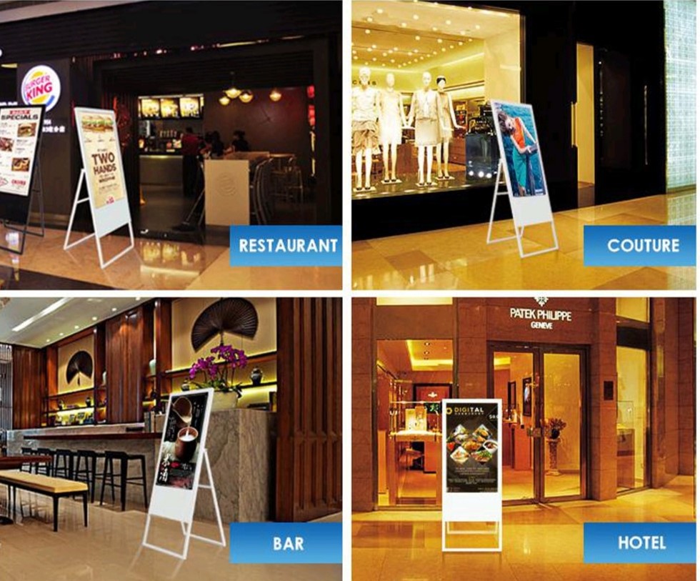 LCD POSTER - created to attract the attention of a potential client in a second with its appearance and capabilities. We upload content (images/videos) via a server (CMS), so there are no field trips and direct contacts after installation.
